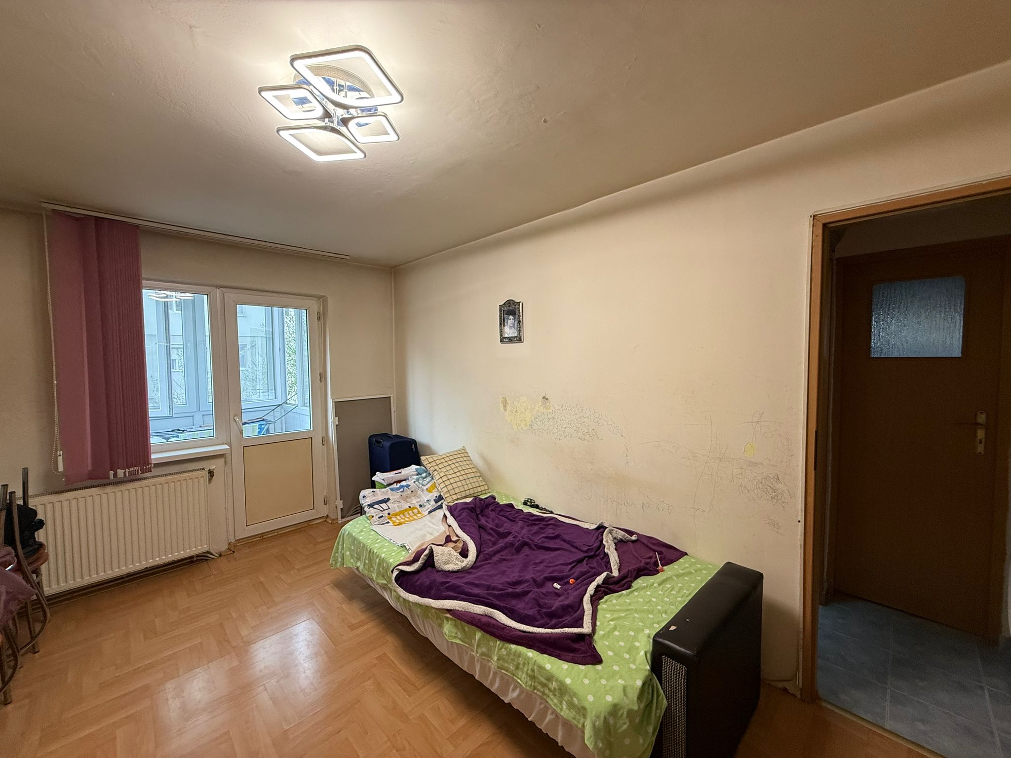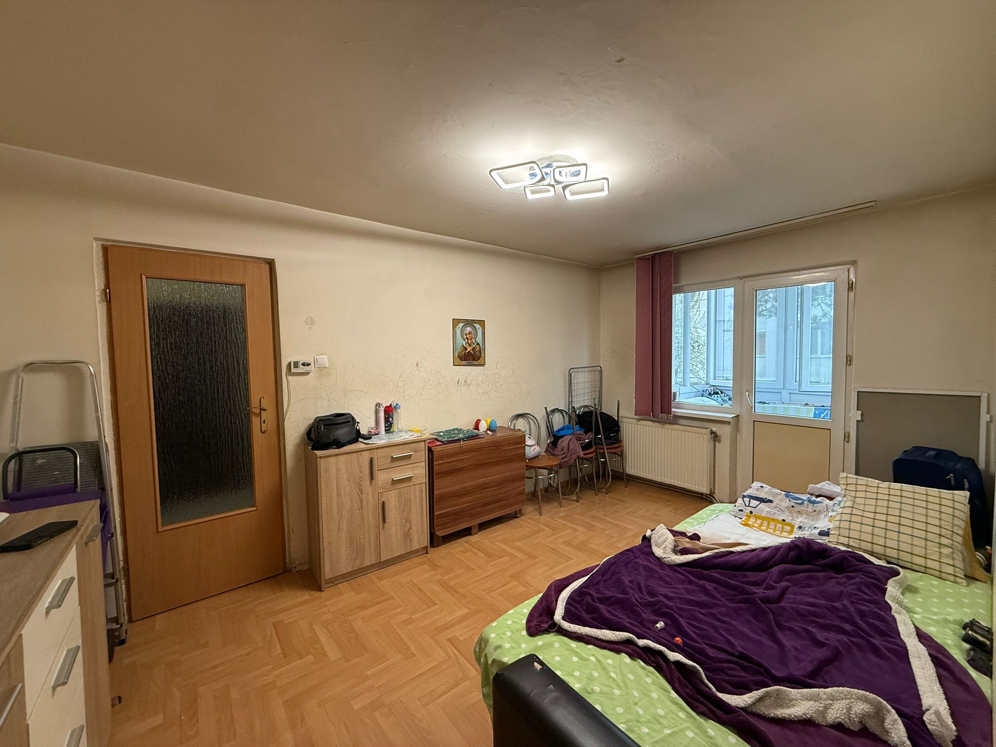 Dispune de balcon închis cu geamuri termopan și baie cu geam pentru aerisire naturală, un avantaj important.