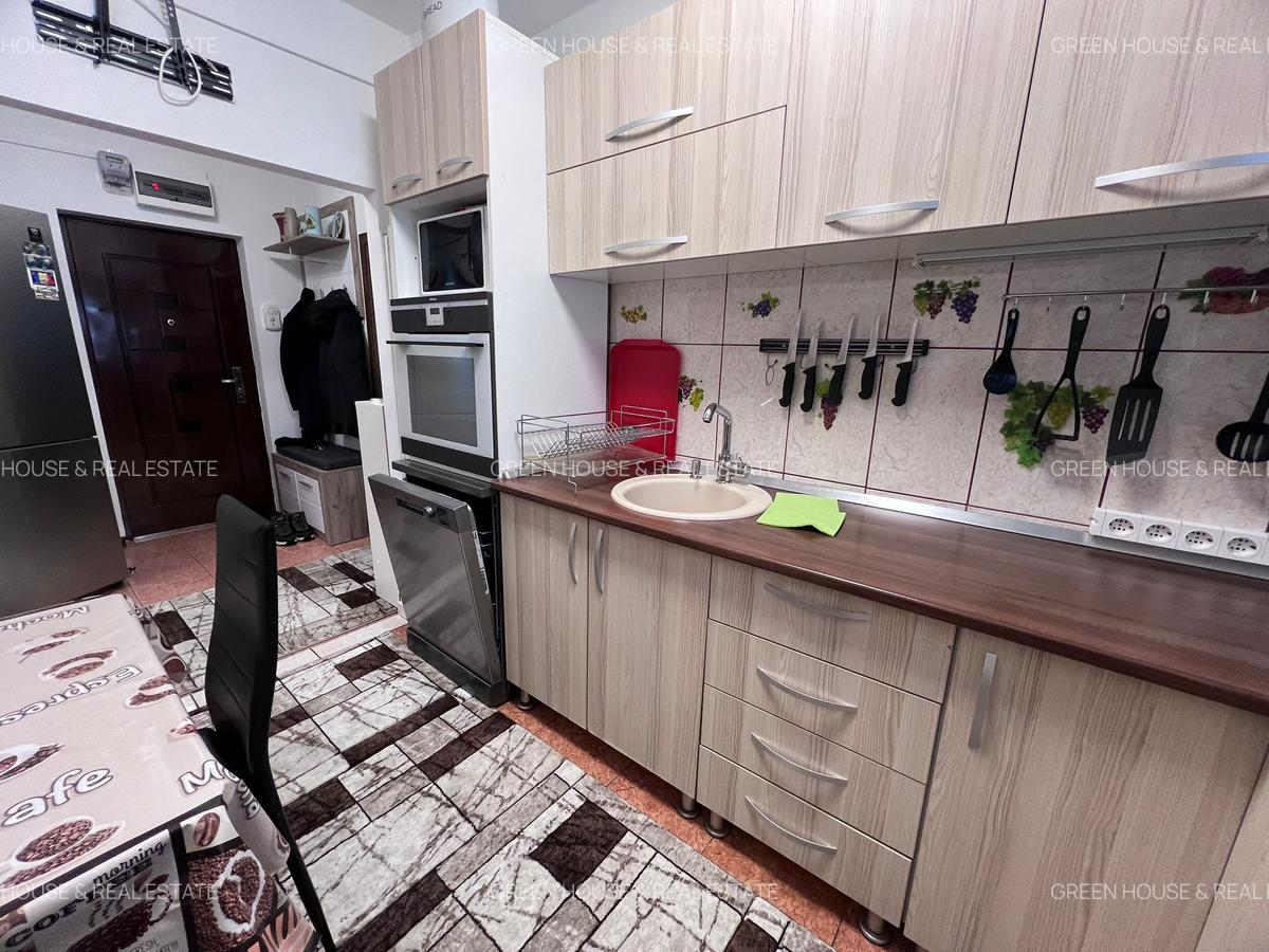 Locuința este complet mobilată și utilată, amenajată, oferind un ambient modern și confortabil. Dispune de bucătărie complet echipată si utilata, baie cu geam si cada,
